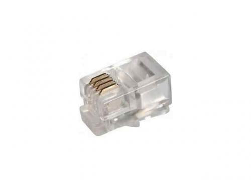 Джек телефонный 4P4C REXANT предназначен для соединения телефонной аппаратуры двух или четырех жильным кабелем, а также другого оборудования, имеющего гнездо разъема 4P4C. Джек 4P4C (англ. Registered jack) размещают на конце телефонных кабелей для соединения с розеткой такого типа. Такой джек называют "трубочным", т.к. в основном используется для подключения телефона к телефонной трубке. Штекер изготовлен из прозрачного качественного пластика и имеет 4 посадочных места и 4 ножа-контакта. На конт