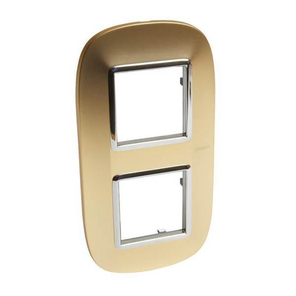 Рамка 2 поста BTicino AXOLUTE в золотом матовом исполнении, модель HB4802/2OSN, представляет собой идеальное дополнение для вашего интерьера. Она сочетает в себе превосходное качество исполнения и изысканный дизайн, придающий вашей электроустановке шик и элегантность.