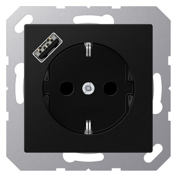 В нашем магазине «Главэлектрика» в Набережных Челнах, вы можете приобрести товар: «Розетка с/з и с USB-зарядным устройством тип A Jung A Черный матовый» с доставкой по г. Набережные Челны.