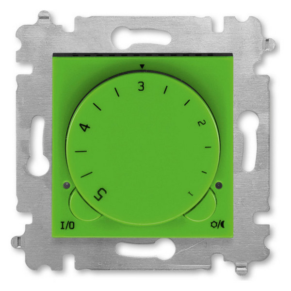Терморегулятор с поворотной ручкой ABB LEVIT представляет собой современное устройство для управления температурой в помещении. Он обладает функцией скрытого монтажа, что позволяет интегрировать его в интерьер без видимых элементов крепления. Цветовое оформление в зеленом и дымчато-черном цветах придает терморегулятору стильный и современный вид.Этот терморегулятор имеет два канала управления, что позволяет настраивать разные температурные режимы для различных зон помещения. Поворотная ручка обеспечивает удобное и точное регулирование температуры.