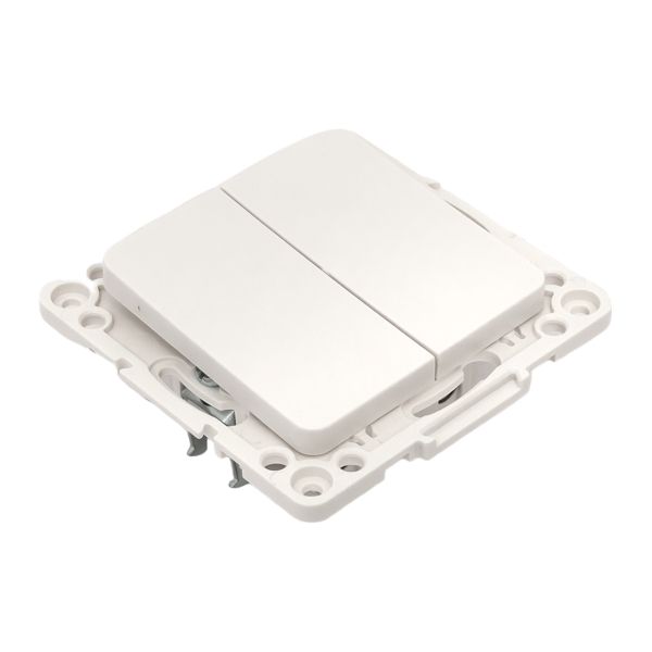 Выключатель двухклавишный проходной EKF серии Стокгольм станет отличным решением для стильного помещения для управления освещением. Выполнен из поликарбоната, устойчивого к ультрафиолетовому излучению. Изделие необходимо дополнить рамкой.