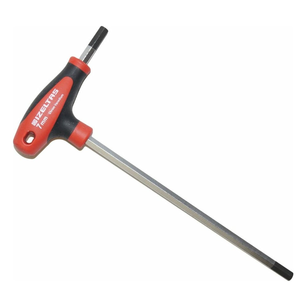 Шестигранник Т-образный с рукояткой IZELTAS 7 мм. Длинная часть 185 мм, короткая часть 30 мм. Габариты упаковки 110x235x25 мм. Изготовлен из высококачественной стали 61CrSiV5. Двухкомпонентная рукоятка, наконечник покрыт чёрной оксидной плёнкой. Вес 125 грамм. Код производителя 4920220070