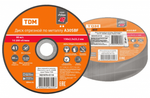 Диск отрезной по металлу, 150х2,5х22,2, тип 41, A30SBF, серия Рубин, TDM - это высококачественный инструмент, предназначенный для профессиональной обработки металла. Диск имеет диаметр 150 мм, толщину 2,5 мм и отверстие диаметром 22,2 мм, что позволяет легко и точно отрезать металлические детали.Диск отрезной типа 41 имеет форму плоского круга и предназначен для работы с угловыми шлифовальными станками. Он обладает высокой прочностью, устойчивостью к износу и долговечностью, что позволяет использовать его в тяжелых условиях эксплуатации.