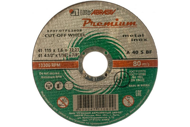 В нашем магазине «Главэлектрика» в Набережных Челнах, вы можете приобрести товар: «Круг отрезной по металлу+нерж. 115 х 1,6 х 22 мм, ПРЕМИУМ (Луга)// Россия» с доставкой по г. Набережные Челны.