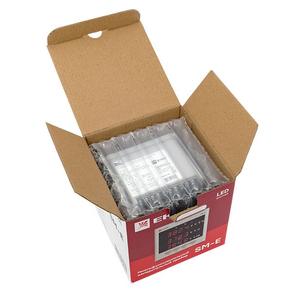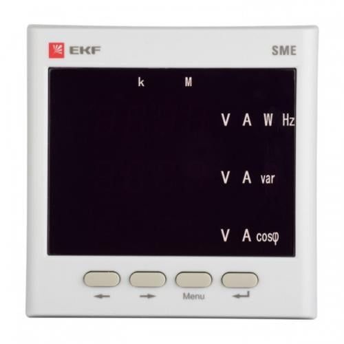 Многофункциональный измерительный прибор SM-E является цифровым программируемым устройством, предназначенным для измерения параметров трехфазных 3-х или 4-х проводных сетей с симметричной и несимметричной нагрузкой с одновременным отображением измеряемых величин и цифровой передачей данных. Прибор дает возможность управления, анализа и оптимизации работы энер-гетического оборудования, систем и промышленных цепей. Прибор измеряет следующие параметры: - среднеквадратичных значений тока и напряжения, частоты, активной, ре-активной и полной мощности, активной и реактивной энергии в прямом и обратном направлениях; - коэффициентов мощности, частоты; - усредненной активной и реактивной мощности.