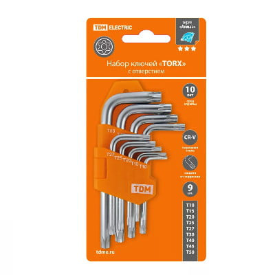 В нашем магазине «Главэлектрика» в Набережных Челнах, вы можете приобрести товар: «Набор ключей имбусовых TORX (звездочки) с отверстием 9 шт: Т10-Т50 , CR-V сталь "Алмаз" TDM» с доставкой по г. Набережные Челны.