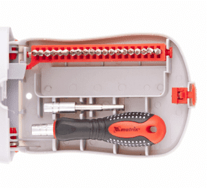 Набор отвертка с битами для точных работ, 22 предмета включает в себя все необходимое для профессиональных и домашних ремонтных работ. В комплекте представлены различные биты для отвертки, которые позволят вам легко и эффективно выполнять разнообразные задачи. Удобный пластиковый пенал обеспечивает удобное хранение и транспортировку инструментов, а также защищает их от повреждений. Набор отвертка с битами для точных работ от Matrix - надежный помощник в выполнении любых ремонтных работ.