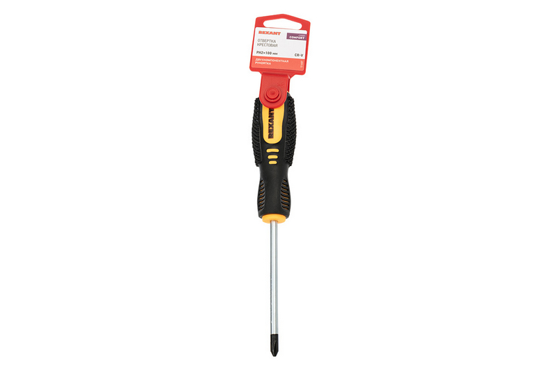 Отвертка крестовая PH 2х100 мм с двухкомпонентной рукояткой REXANT - надежный инструмент для проведения работ по монтажу и ремонту. Изготовлена из прочного материала, что обеспечивает долгий срок службы. Удобная двухкомпонентная рукоятка обеспечивает комфортное и надежное сцепление, что позволяет работать с отверткой без усталости. Размер крестовой отвертки PH 2х100 мм идеально подходит для работы с разнообразными крепежными элементами. Благодаря качественным материалам и удобному дизайну, данная отвертка станет незаменимым помощником как для профессионалов, так и для любителей ремонтных работ.