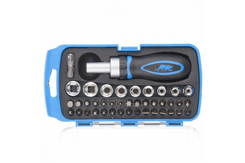 Отвертка реверсивная с набором бит и торцевыми головками, 41 шт от компании БАРС - это универсальный инструмент для проведения различных видов ремонтных работ. В комплекте представлено 41 разнообразных насадок, позволяющих работать с различными типами винтов и крепежных элементов. Реверсивная функция позволяет легко изменять направление вращения, что упрощает процесс работы. Удобная эргономичная рукоятка обеспечивает комфортное использование инструмента. Набор отвертки отличается надежностью, долговечностью и высоким качеством материалов, из которых изготовлены все элементы.
