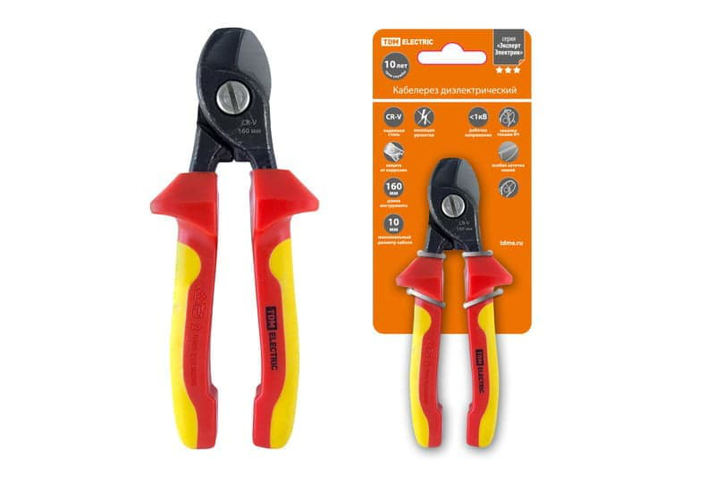 Ножницы кабельные диэлектрические 160 мм, 1000 В, CR-V, ЭкспертЭлектрик TDM - это надежный и безопасный инструмент для работы с электрическими кабелями. Изготовлены из высококачественной хром-ванадиевой стали, что обеспечивает прочность и долговечность инструмента. Диэлектрическое покрытие позволяет использовать ножницы при работе с электрическими цепями напряжением до 1000 В, обеспечивая безопасность пользователя. Удобный размер (160 мм) и эргономичные рукоятки делают работу с ножницами комфортной и эффективной. Ножницы кабельные ЭкспертЭлектрик TDM - незаменимый помощник для профессионалов в области электромонтажа и ремонта электрических сетей.