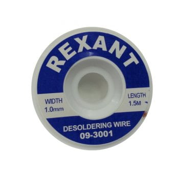 Медная лента для удаления припоя d=1мм. - 1.5м REXANT арт.09-3001 - это специальная лента, предназначенная для удаления припоя с поверхности печатных плат и других электронных устройств. Ее диаметр составляет 1 мм, а длина - 1.5 м, что обеспечивает удобство использования при работе с различными элементами. Продукт изготовлен из меди, что обеспечивает надежное и эффективное удаление припоя без повреждения поверхности. Артикул 09-3001 гарантирует качество и надежность продукта от производителя REXANT.