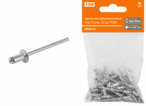 В нашем магазине «Главэлектрика» в Набережных Челнах, вы можете приобрести товар: «Заклепки алюминиевые 4.0х10 мм, 50 шт TDM» с доставкой по г. Набережные Челны.