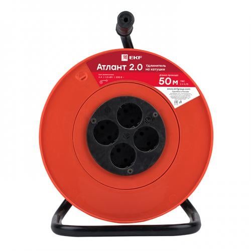 В нашем магазине «Главэлектрика» в Набережных Челнах, вы можете приобрести товар: «Удлинитель на катушке "Атлант 2.0" 4 гнезда 50м с заземлением ПВС 3*1,0 10А/2,2кВт PROxima» с доставкой по г. Набережные Челны.