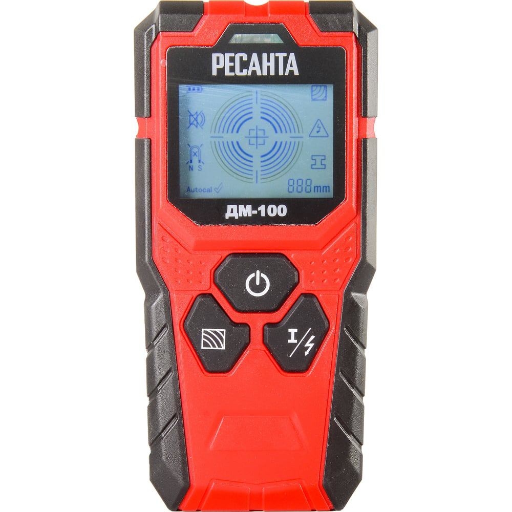 Детектор металла Ресанта ДМ-100 поможет обнаружить черные или цветные металлы в стенах, балках, полах. Им удобно находить скрытую проводку. Аппарат способен существенно облегчить и удешевить ремонтные работы в квартире или в доме.Функционал устройства позволяет выявлять проводку, найти разрыв кабеля, зашитые в стены трубы и арматуру, обнаружить незаземленное оборудование.Отличительные особенности Ресанта ДМ-100:Устройство может работать при температурах от -10 до +50℃.Глубина обнаружения материалов варьируется. Для черных металлов эта величина составляет 100 мм, для цветных от 50 для медных проводов до 80 для труб из этого же материала. Однако стоит понимать, что эти цифры не конечные. Они могут как уменьшаться, так и увеличиваться в зависимости от окружающего материала и физических характеристик среды.Продолжительность работы на одном заряде батареи составляет 6 ч. Это значит, что в течение дня не придется отвлекаться для подзарядки.Аппарат компактный и легкий, его можно применять в одиночку.Простота управления.Детектор металла Ресанта ДМ-100 станет незаменимым помощником при ремонте. Он поможет быстро обнаружить скрытые трубы, проводку и многое другое. Это существенно сэкономит время и средства.