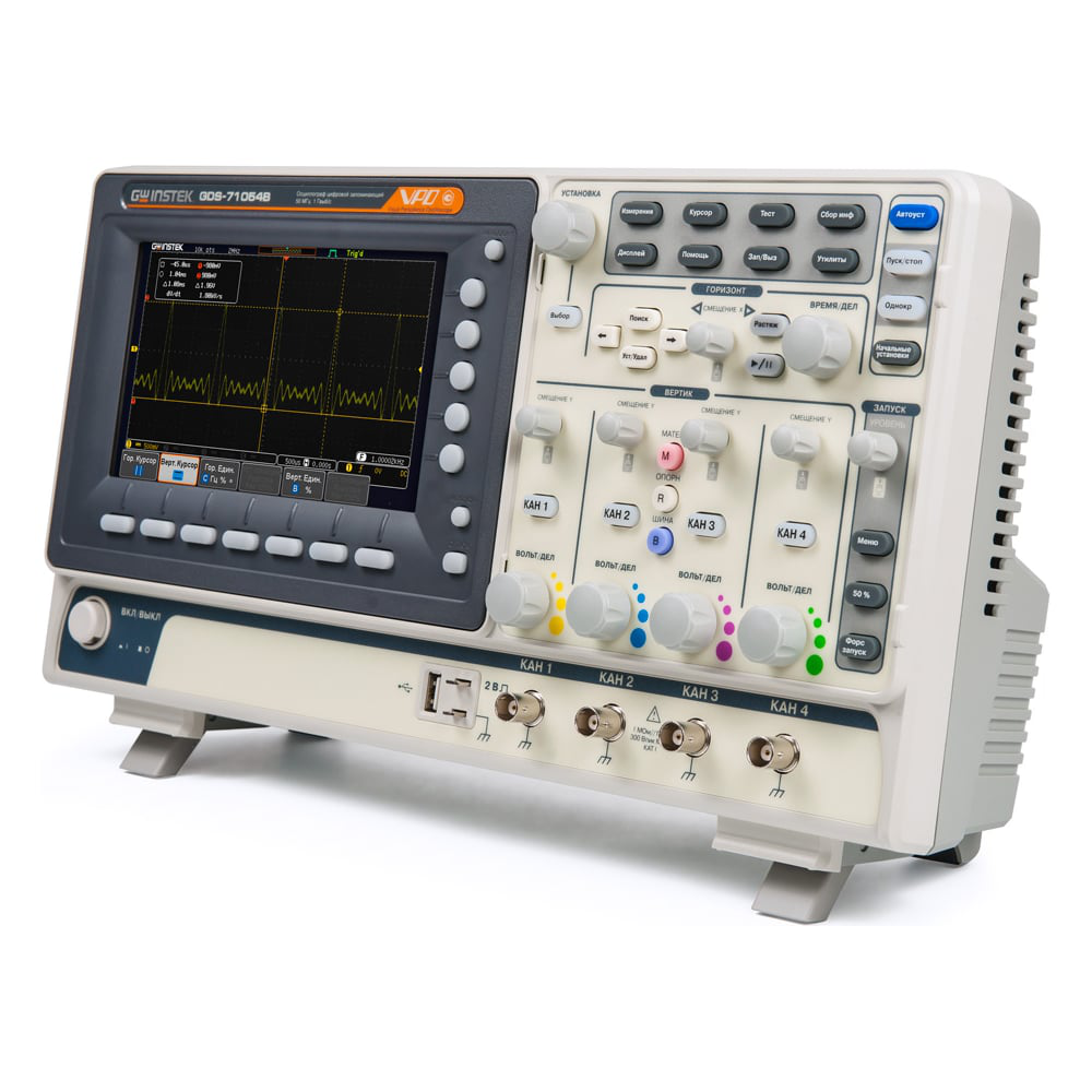 Осциллограф GW Instek GDS-71102B легок в обращении благодаря цветной маркировке органов управления. С его помощью можно быстро и эффективно обнаружить аномалии сигнала. Для простоты считывания информации все данные выводятся на цветной экран. Полоса пропускания достигает 100 МГц, количество каналов можно выбрать для разных задач.