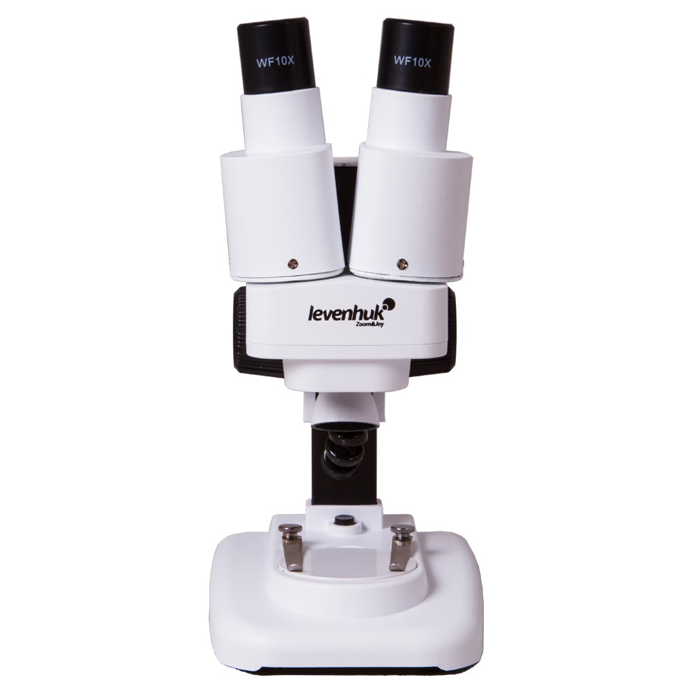 Бинокулярный микроскоп Levenhuk 1ST 70404 дает 20-кратное увеличение и передает четкую и контрастную картинку по всему полю зрения. Вы сможете видеть структуру образцов, рассматривать дефекты на поверхностях, проводить точные работы с биологическими препаратами. Оптика данной модели создает объемное изображение, подсветка позволяет работать в условиях недостаточной освещенности. Над предметным столиком расположен светодиодный осветитель, яркости которого хватит даже для работы в ночное время. Подсветка работает от двух батареек типа АА (нет в комплекте). Вы можете зафиксировать образец на предметном столике при помощи металлических держателей. Для точной фокусировки используйте ручку грубой настройки.