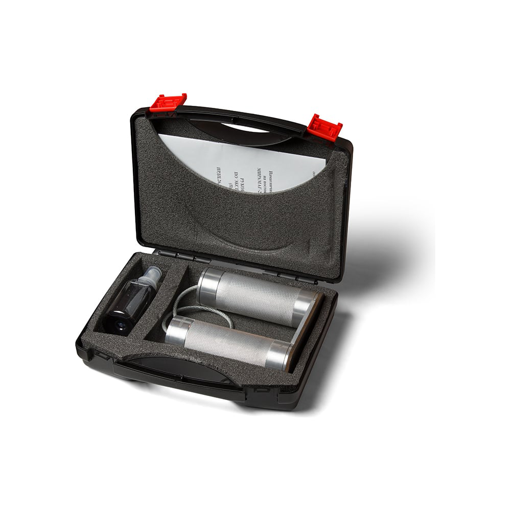 Намагничивающее устройство предназначено для намагничивания участков сварных соединений и поверхностей изделий из ферромагнитных материалов приложенным магнитным полем для обнаружения поверхностных и подповерхностных дефектов (трещины различного происхождения, волосовины, поры, непровары сварных соединений, надрывы) в процессе проведения неразрушающего контроля магнитопорошковым методом. Прибор может применяться для проведения оперативного магнитопорошкового контроля в труднодоступных местах, объектов сложной формы и в случае, когда электрическое питание контролирующего оборудования запрещено по нормативным документам или невозможно, например, при осуществлении высотных работ, в полевых условиях, при контроле качества внутренней поверхности котлов и емкостей. Расстояние между полюсными наконечниками должно быть в пределах от 50 до 400 мм. Технические характеристики: Прибор состоит из двух разнополюсных постоянных магнитов, которые находятся в цилиндрических корпусах, соединенных между собой гибким магнитопроводом (тросом).