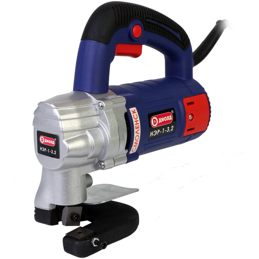 Ручные электрические ножницы ДИОЛД НЭР-1-3.2 10141030 надежны и практичны в эксплуатации. Используются для простого и фигурного резания металла толщиной до 3.2 мм. Двигатель мощностью 1000 Вт обеспечивает высокую производительность. Для защиты оператора при работе предусмотрен специальный козырек. Режим работы ножниц - S2-30 мин.