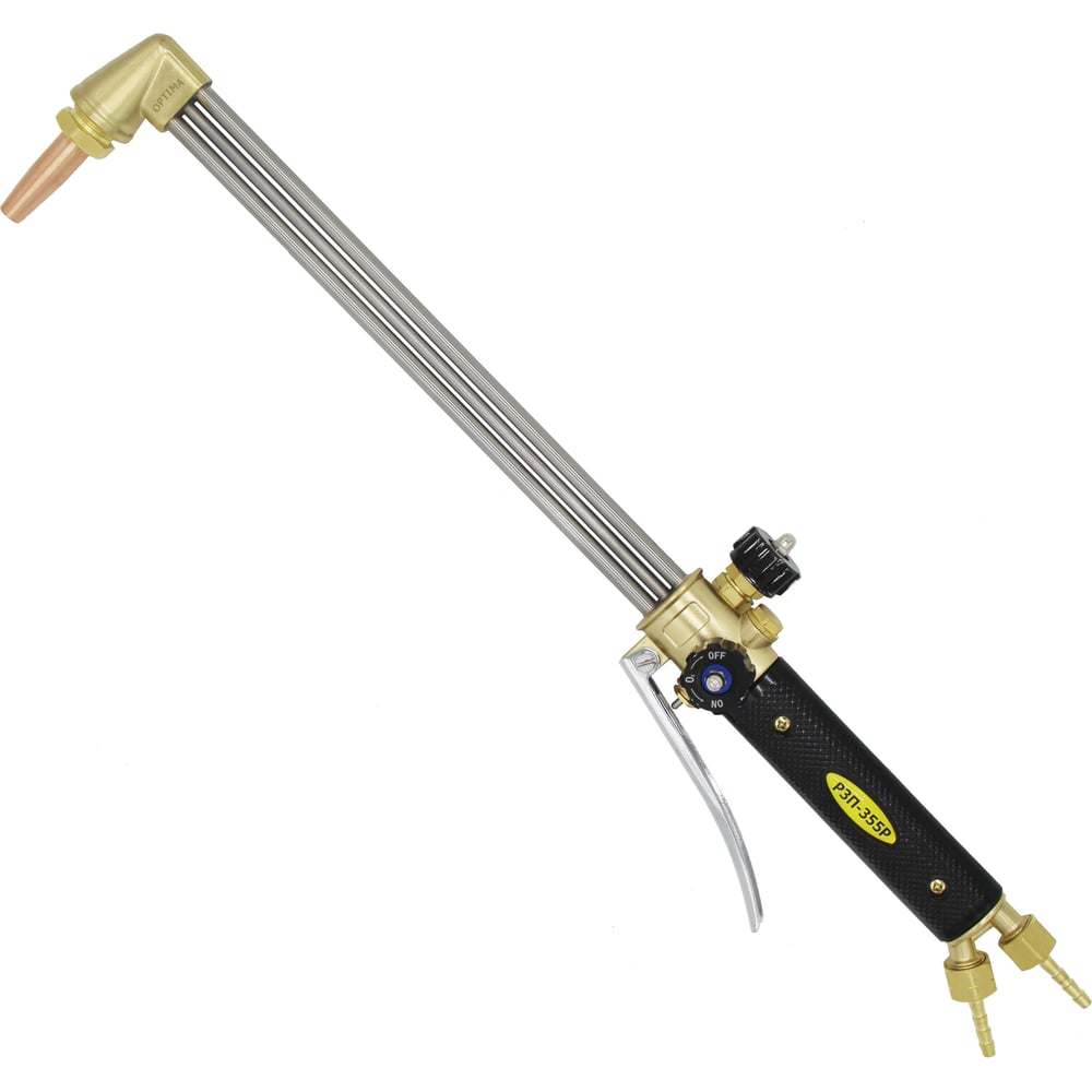 Универсальный резак Р3П-355Р Optima N1111 трёхтрубный с усиленным клапаном и внутрисопловым смешением газов предназначен для ручной газокислородной резки листового и сортового металла из низкоуглеродистых сталей с использованием кислорода по ГОСТ 5583 и пропана технического марки ПТ, бутана технического марки БТ, смеси пропан-бутановой марки СПБТ по ГОСТ 20448. Раздельная подача газов и получение горючей смеси внутри мундштука обеспечивает высокую безопасность инструмента. Основные параметры резаков соответствуют требованиям к резакам типа Р3 по ГОСТ5191-79.