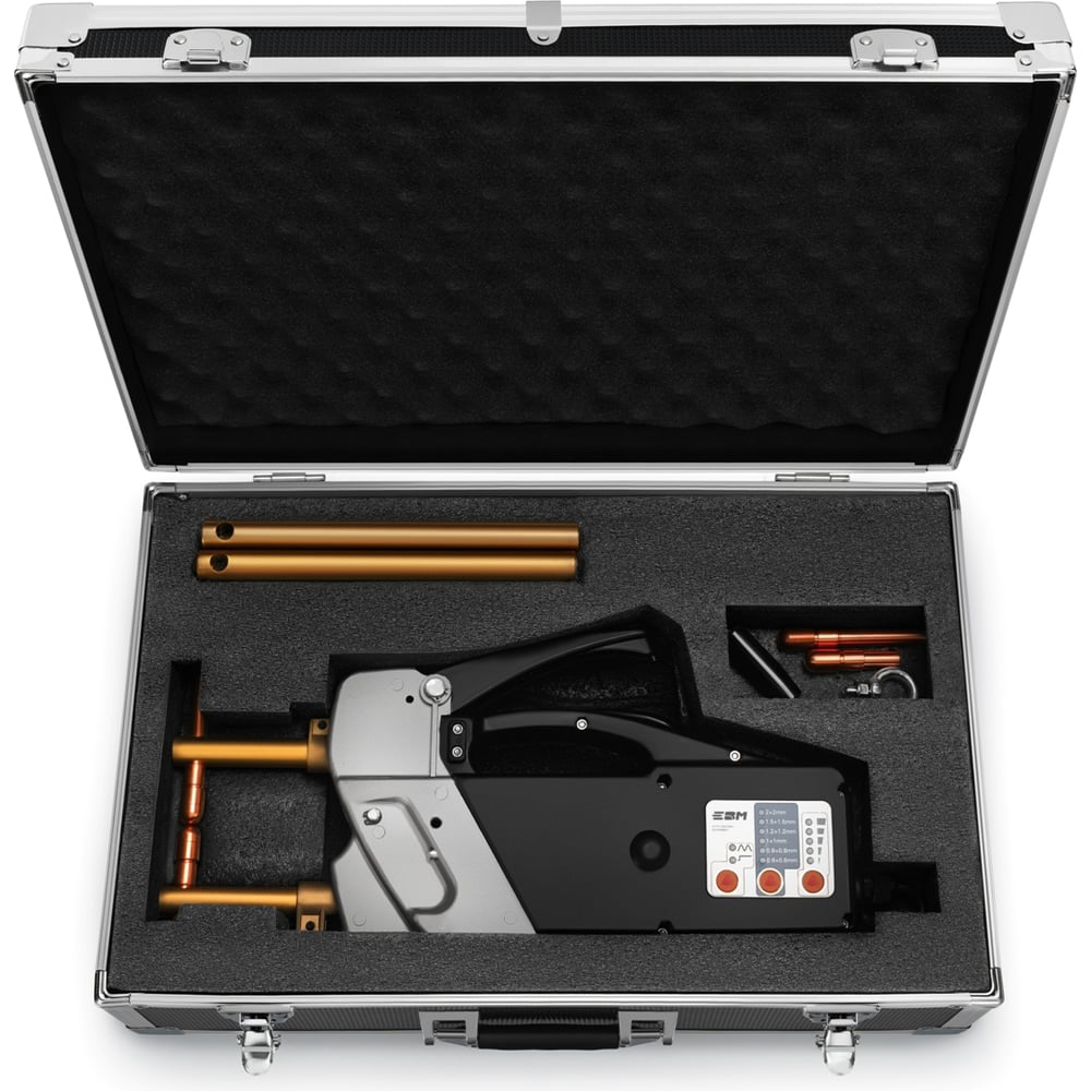 Клещи ручные SWT предназначены для точечной сварки листов толщиной 2+2 мм. Особенности: Автоматическая регулировка времени точечной сварки и тока в зависимости от выбранной толщины материала; Выбор между непрерывным и импульсным режимом работы; Наличие импульсного режима позволяет производить сварку листов из высокопрочной стали с высоким пределом текучести; Регулировка давления на консоль от 40 до 120 кг (консоли 120 мм); Электронный таймер, с регулируемым временем точечной сварки от 0,1 сек до 1,2 сек; Ручка из термостойкого материала; В комплекте транспортировочный кейс и консоли 120 мм и 250 мм с электродами.