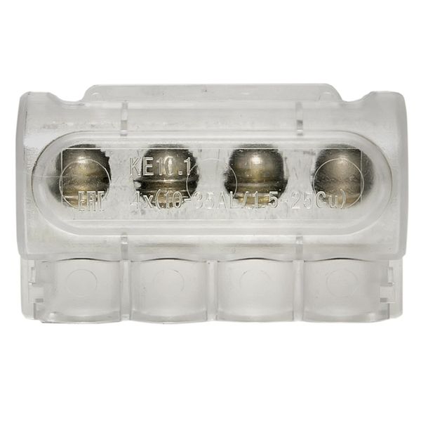 Клеммник уличного освещения типа ke-10.1 предназначен для соединения и разветвления 4-х жильных кабелей внутри стоек или щитов опор и мачт уличного освещения. Подходит для медных и алюминиевых проводов. При подключении проводов необходимо зачистить концы от изоляции. Контакт с зачищенным проводом обеспечивается прижимными винтами с внутренним шестигранником. На проводящие части нанесена контактная смазка. Корпус клеммника неразборный.