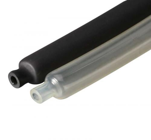 Предназначены для герметизации, изоляции и защиты от коррозии контактных соединений в электроэнергетике и телекоммуникациях Расширенный коэффициент усадки: 3:1 Материал: полиолефин, не поддерживает горение Цвет: черный По всей внутренней поверхности термоусадочных трубок методом соэкструзии нанесен слой термоплавкого клея Трубки черного цвета обеспечивают устойчивость к воздействию ультрафиолетового излучения При усадке клеевой подслой расплавляется, заполняет все неровности микрорельефа и обеспечивает полную герметичность соединений Форма поставки: нарезка по 1 м Инструмент для монтажа: высокотемпературный фен ТТ-1800 или портативные бутановые горелки «КВТ» Относительное удлинение при разрыве не менее 350% Температура усадки 115–140 °C Температура эксплуатации от -55 °C до +125 °C Прочность на растяжение не менее 10 МПа Электрическая прочность не менее 20 кВ/мм Рабочее напряжение до 1000 В Удельное объемное электрическое сопротивление 1014 Ом*см