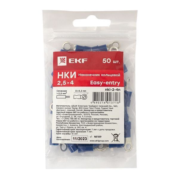 В нашем магазине «Главэлектрика» в Набережных Челнах, вы можете приобрести товар: «Наконечник кольцевой изолированный НКИ 2.5-4 (50шт.) EKF PROxima» с доставкой по г. Набережные Челны.