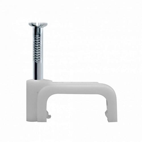 Скоба с гвоздём предназначена для быстрого и надежного крепления плоских кабелей к дереву, прессованному картону, швам кирпичной кладки, к штукатурке, бетону, кирпичу. Изготовлены из гибкого негорючего ударопрочного полипропилена, гвоздь - закаленная оцинкованная сталь.
