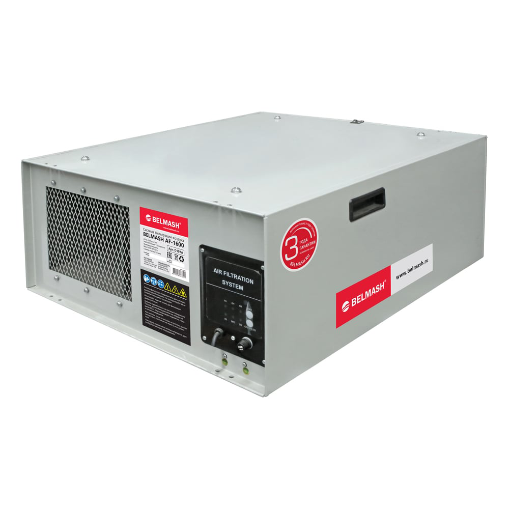 Система фильтрации воздуха Белмаш AF-1600 D107A используется в производственных помещениях, где основное загрязнение происходит частицами, образующими взвесь. Очистка воздуха происходит при помощи фильтров грубой очистки и тонкой очистки. Прибор управляется пультом ДУ.