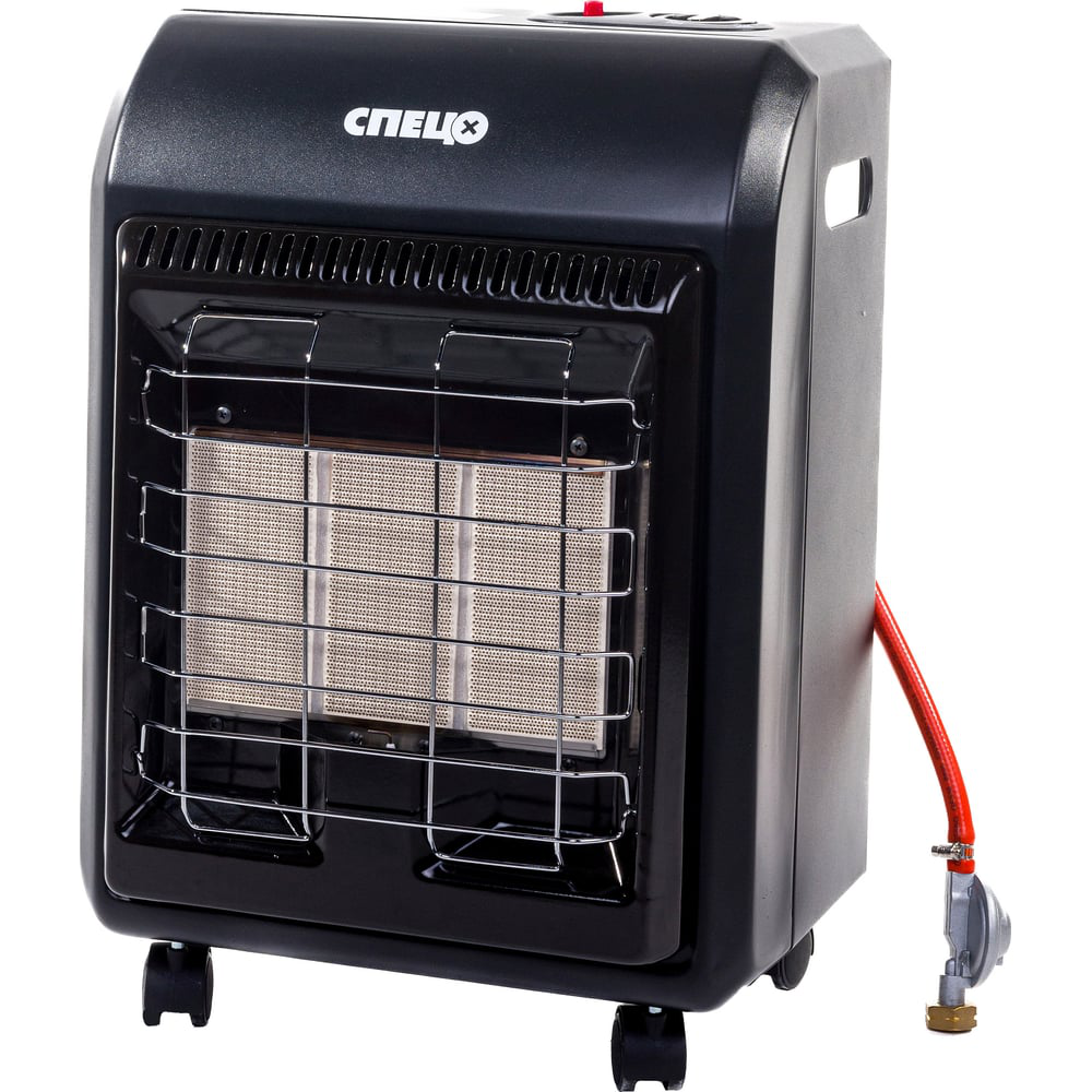 Газовый инфракрасный обогреватель Спец 4,2 кВт СПЕЦ-ГИ-42А используется для обогрева помещений площадью 40 м2. Прибор легко транспортируется благодаря своему небольшому размеру и колесикам. Наличие шланга и редуктора позволяют быстро подключить прибор к газовому баллону с сжиженным газом (пропан/бутан). Дополнительные характеристики: Мощность по ступеням, кВт: 1,55/2,9/4,2. Диаметр жиклера, мм: 0,58 Расход газа, кг/час: 0,11/0,21/0,31.