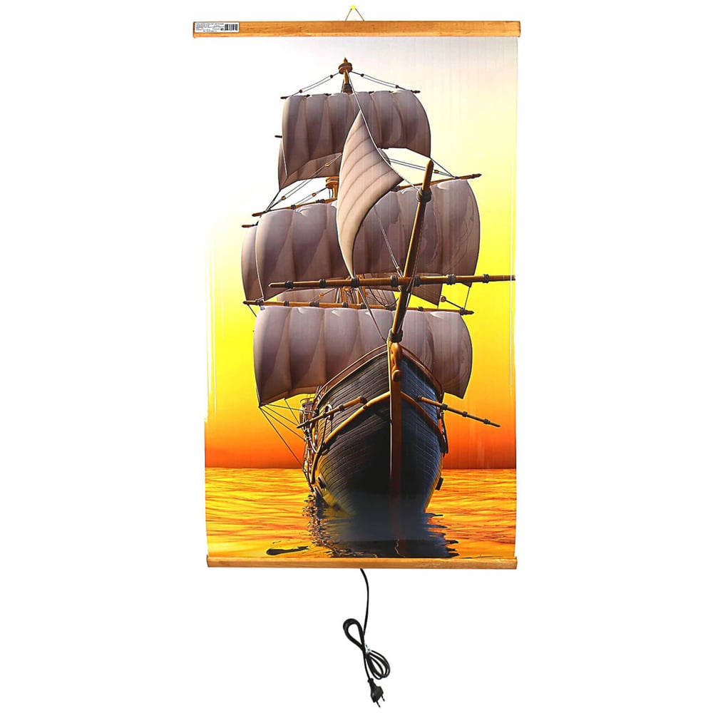 Инфракрасный гибкий настенный обогреватель для квартиры и дачи Домашний Очаг Корабль ИКОДО-КР предназначен для дополнительного обогрева помещений в холодное время года. Он не сушит воздух и не сжигает кислород. Обогреватель-картина с рисунком не только подарит тепло и уют дому, но и украсит его. ИК волны аналогичны солнечным лучам и воспринимаются телом человека как приятное тепло, грея мягко и не обжигая. Прибор отлично подойдет для использования на даче, балконе, в квартире, особенно в подростковых комнатах в стиле лофт. Он идеален для помещений площадью до 15 кв.м. Пленочный обогреватель-картина закрепляется на стену при помощи дюбеля и шурупа (входят в комплект).