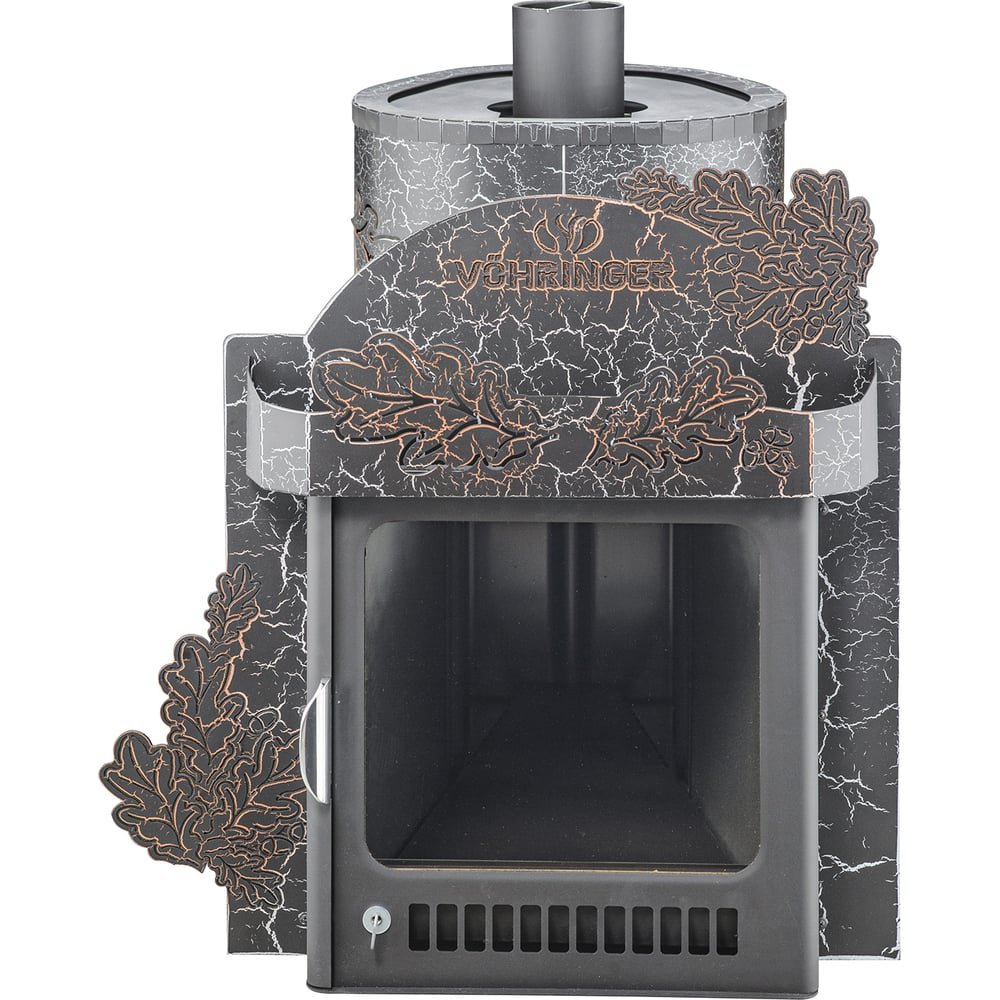 Печь для бани VOHRINGER malutka_kozhuh_dub помогает создать стильную, уютную парилку, где можно приятно провести время. Печь будет обеспечивать парилку необходимой температурой и паром. Она имеет неповторимый дизайн, украшена большими дубовыми листьями. Боковая дверца имеет форму и размер каминной дверцы, а это позволит лежа на полке наслаждаться игрой огня. Материал, из которого изготовлена печь не нуждается в обложении камнями, поскольку успешно справляется с функцией нагрева и отдачи тепла. Печь вполне подойдет для небольшой парилки, где прекрасно разместится небольшая компания.
