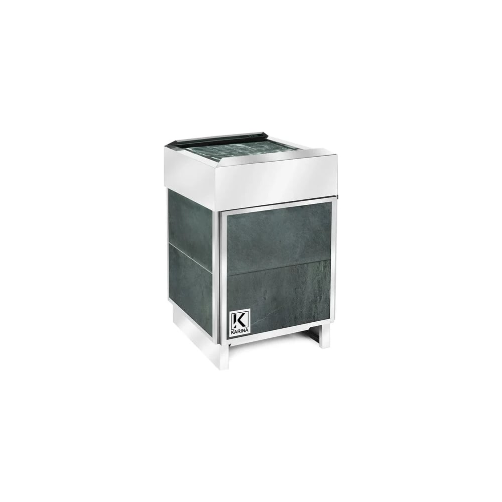 Электрическая печь Karina Elite 8 Талькохлорит El-8-380-T обладает оригинальным и современным дизайном, который подойдет для бани с любым дизайнерским решением. Прибор мощностью 8 кВт позволяет обогреть парильное помещение объемом 12 куб.м. Облицовка корпуса выполнена из талькохлорита. Толщина горизонтальных плит - 6 см. Изделие оборудовано нагревательным элементом нового поколения - низкотемпературной лентой.