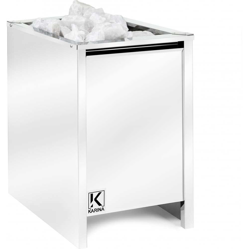 Электрическая печь KARINA Classic 15 – это компактная и простая в управлении каменка, чья мощность позволяет отопить парильное помещение коммерческой сауны объемом до 24 м3.Модель имеет лаконичный, но современный внешний вид, благодаря чему печь впишется в интерьер любой сауны.Для работы электропечи с такой мощностью необходима будет сеть с напряжением 380 В. Отлично подходит для быстрого обогрева парной.Нагревательным элементом в печке является ТЭН из высококачественной нержавеющей стали. Его диаметр составляет 10 мм. Подобные нагреватели не боятся попадания влаги. Это позволяет устанавливать электрическую каменку как в финские сауны с «сухим» паром, так и в русские традиционные бани с повышенной влажностью, потому что на камни, находящиеся в электропечи можно спокойно лить воду для повышения влажности пара.ТЭН из специальной нержавейки обладает повышенной электробезопасностью и большой тепловой инерцией.Представленная модель электрокаменки имеет отсек для камней, который вмещает до 80 кг. Она монтируется напольно.Электропечь не имеет в комплектации выносного пульта управления, он приобретается отдельно.