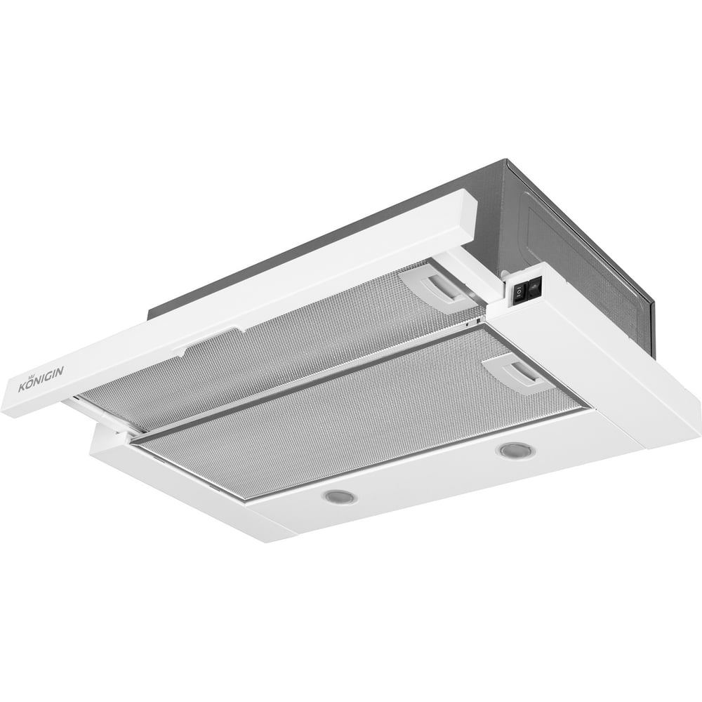 Кухонная вытяжка Konigin Pixel White 60 103037 с прямой декоративной панелью. Ширина шкафа для установки - 60 см. Удобное механическое клавишное управление. Мощный и производительный мотор. Современное энергоэффективное LED освещение - 2 светодиодных светильника. Механическое клавишное управление, переключатели на передней панели за выдвижной кареткой.