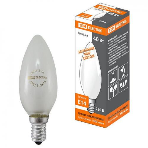 В нашем магазине «Главэлектрика» в Набережных Челнах, вы можете приобрести товар: «TDM 40Вт 230В Е14 матовая свеча» с доставкой по г. Набережные Челны.