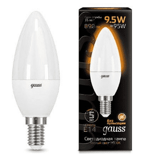 Gauss Лампа LED Candle E14 9.5W 3000К Тип напряженияAC (перемен.)