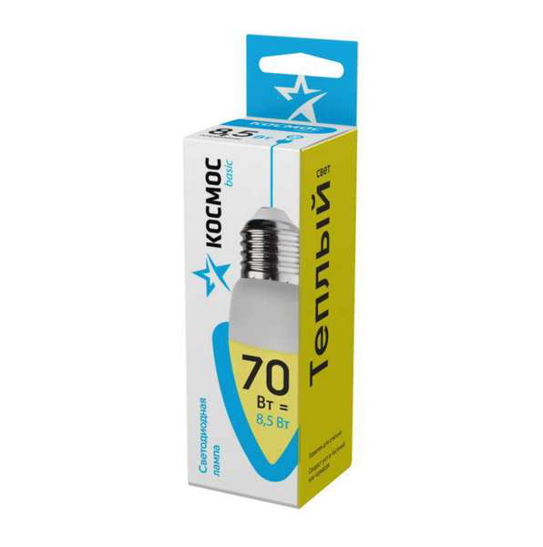 Лампа светодиодная Космос свеча обладает мощностью 8.5Вт и предназначена для использования с напряжением 220В. Она оснащена цоколем E27 и излучает теплый белый свет с цветовой температурой 3000К. Лампа LkecLED8.5wCNE2730 обеспечивает яркое и комфортное освещение, а также отличается высокой энергоэффективностью и долгим сроком службы. Подходит для использования в домашних интерьерах, офисах, магазинах и других помещениях.