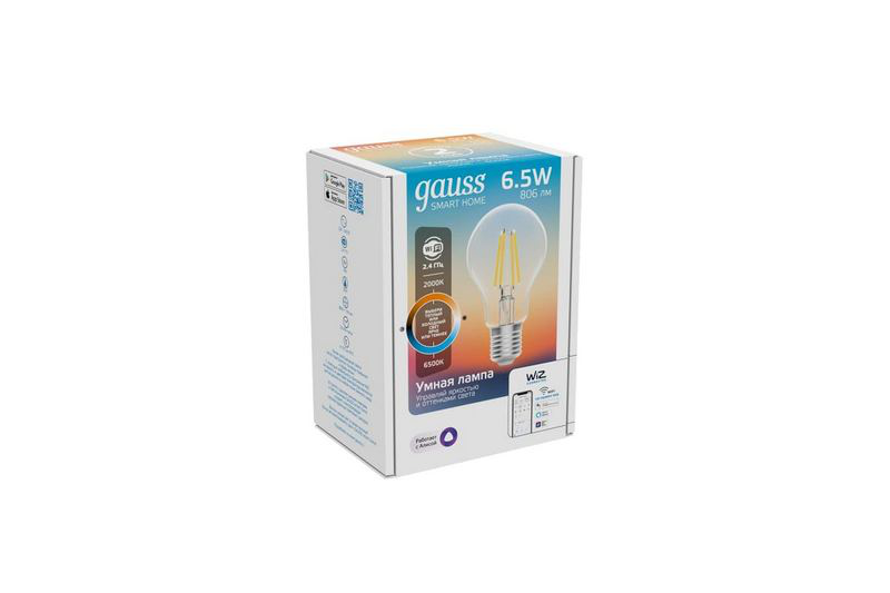 Светодиодная умная лампа Gauss A60 Smart Light ССТ DIM E27 A60 6,5 Вт 2700-6500K, 1220112 - это инновационная лампа, которая обеспечивает яркое и качественное освещение. Благодаря технологии светодиодов, она потребляет всего 6,5 Вт энергии, что делает ее энергоэффективным выбором для вашего дома или офиса.Эта умная лампа поддерживает функцию регулировки яркости и цветовой температуры от 2700K до 6500K, что позволяет создавать различные атмосферы в помещении в зависимости от ваших потребностей. Благодаря технологии светодиодов, лампа имеет длительный срок службы и надежность.