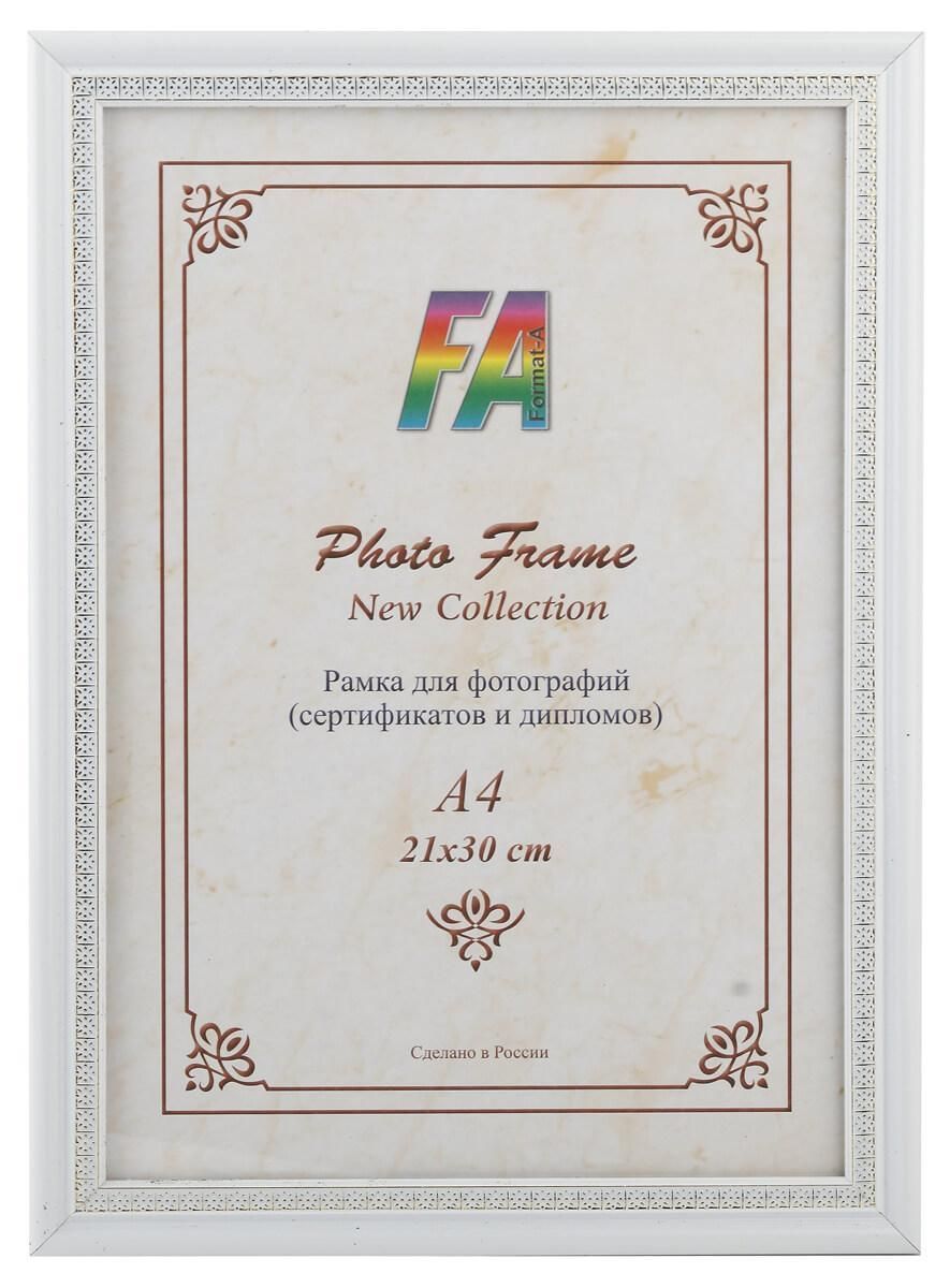 Расширенная гарантия на товар составляет 12 месяцев. поставщик рекомендует использовать лампы накаливания с цоколем не указан для освещения площади не указана м2. Фоторамка FA пластик Касабланка белый 21х30 (12/252) Б0034886 в современном стиле используется в интерьере не указан с установкой На стол.