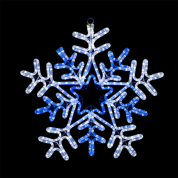 Фигура световая Снежинка в цвете белом и синем - идеальное украшение для вашего дома или офиса во время праздников. Её размер 60x60 см позволит выделиться среди других украшений. Световая фигура защищена по стандарту IP65, что обеспечивает её защиту от пыли и влаги. Контроллер в комплекте позволит вам легко управлять режимами свечения и создавать уютную атмосферу в помещении или на улице. Подарите себе и своим близким волшебство и радость с помощью этой прекрасной световой Снежинки.