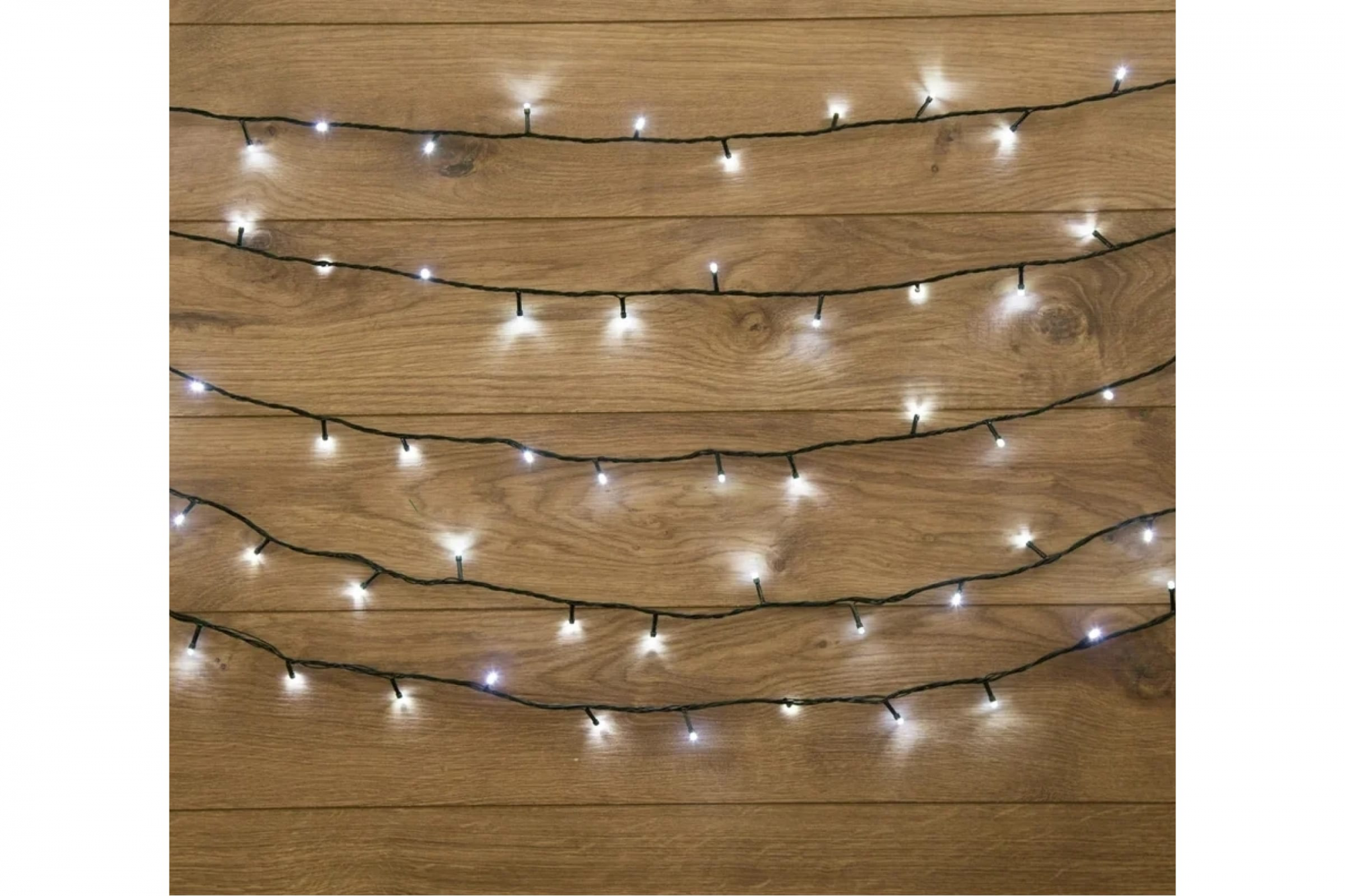 Гирлянда имеет длину 20 метров и включает в себя 160 LED-лампочек. Это позволяет охватить большую площадь и окружить пространство яркими точками света.