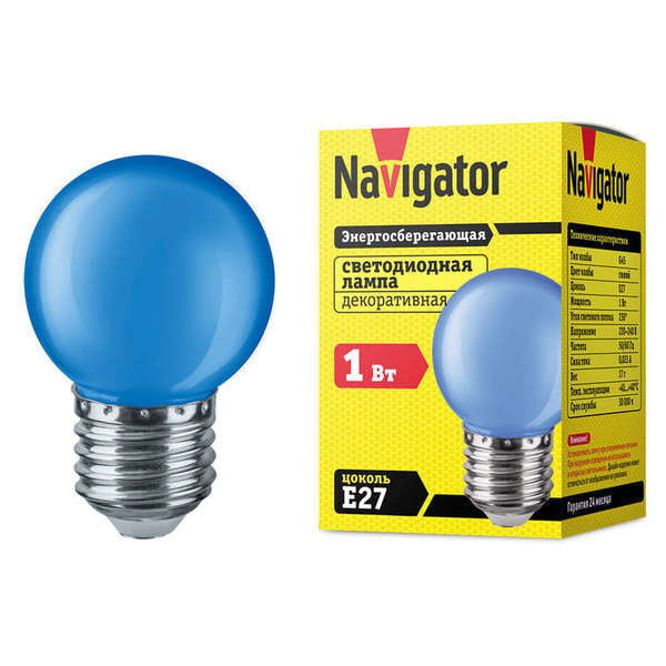 В нашем магазине «Главэлектрика» в Набережных Челнах, вы можете приобрести товар: «.Navigator NLL-G45-1-230-B-E27 син. 71 829 лампа НОВИНКА» с доставкой по г. Набережные Челны.