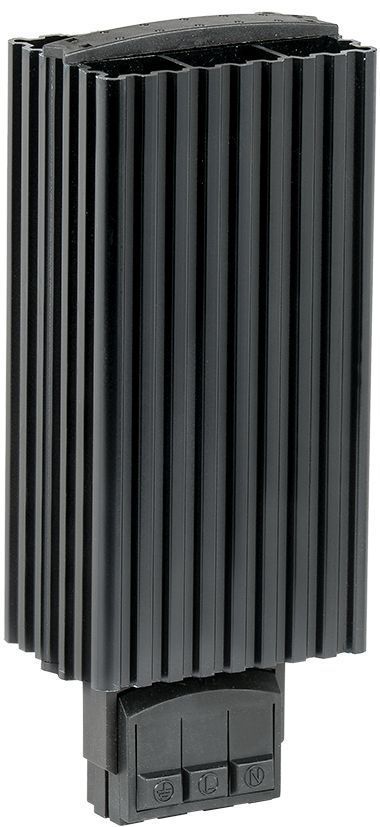 Обогреватель на DIN-рейку предназначен для нагрева воздуха внутри электротехнических шкафов. Создаваемый конвекционных воздушный поток предотвращает образование областей с низкой температурой и защищает электрические компоненты от образования конденсата и замерзании при перепадах температуры, а также коррозии металлических элементов активного оборудования. Наличие калорифера с саморегулированием обеспечивает естественную циркуляцию нагретого воздуха внутри шкафа и позволяет избежать перегрева. При установке в паре с терморегулятором используется для поддержания требуемой температуры внутри шкафа и организации стабильной работы установленного оборудования. Может быть использован в электрооборудовании переменного тока частотой 50 Гц и напряжением до 230 В. Динамическая система нагрева воздуха максимально эффективна при длительных режимах работы. Подключение посредством зажимов делает монтаж максимально простым и быстрым.