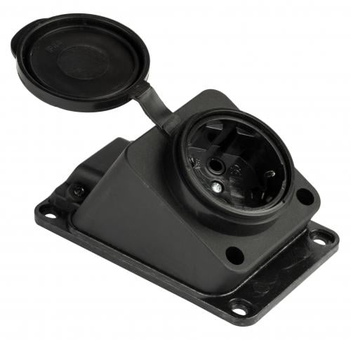 Розетка Каучук настенная с защитной крышкой, наклонная, предназначена для установки на стенах помещений с повышенной влажностью или на улице. Розетка имеет напряжение 230В, два полюса и заземляющий контакт, что обеспечивает безопасное подключение электроприборов. Степень защиты IP44 гарантирует защиту от пыли и брызг воды. Идеальный выбор для использования во влажных условиях, например в ванной комнате, на кухне или на улице.