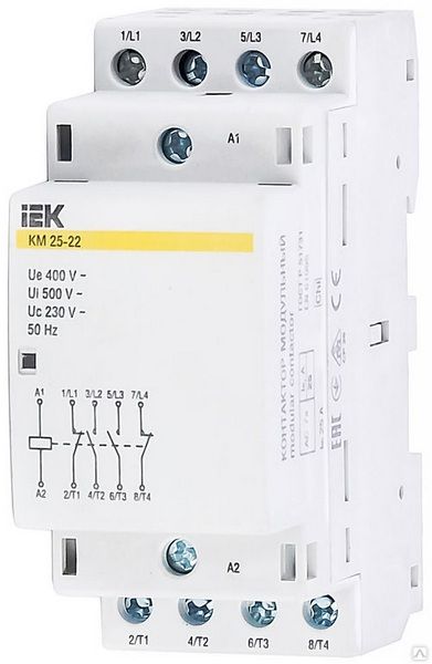Контакторы модульные типа КМ торговой марки IEK предназначены для применения в сетях переменного тока напряжением до 400 В частоты 50 Гц и служат для коммутации слабоиндуктивных нагрузок с номинальным током до 63 А. Используются для автоматизации и управления различных технологических процессов, в том числе в системах освещения, кондиционирования, вентиляции и т.д.