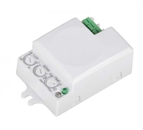 Микроволновый датчик движения излучает высокочастотные электромагнитные волны (частота волн обычно она составляет 5,8ГГц), которые отражаются от окружающих объектов и регистрируются сенсором. В случае обнаружения малейших изменений электромагнитных волн, микропроцессор датчика приводит в действие заданные настройки. Назначение: - для автоматического включения и отключения нагрузки в заданном интервале времени при появлении движущихся объектов в зоне обнаружения датчика. Применение: - управление уличным освещением; - управление внутренним освещением; - управление устройствами сигнализации.