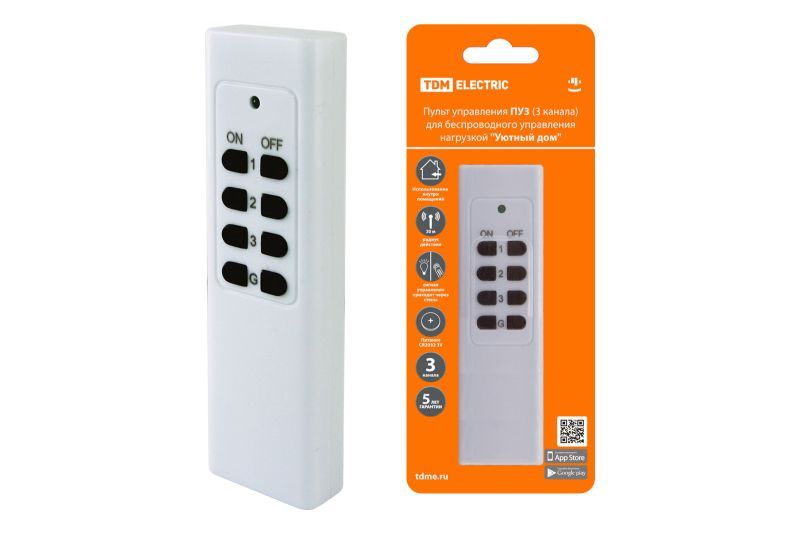 Пульт управления ПУ3 (3 канала) для беспроводного управления нагрузкой Уютный дом TDM - это удобное устройство, которое позволяет беспроводно управлять различными устройствами в вашем доме. С помощью трех каналов вы можете управлять освещением, бытовой техникой или другими электроприборами, делая ваш дом еще более комфортным и уютным. Пульт управления ПУ3 легко настраивается и использовать, что делает его идеальным выбором для автоматизации вашего дома.
