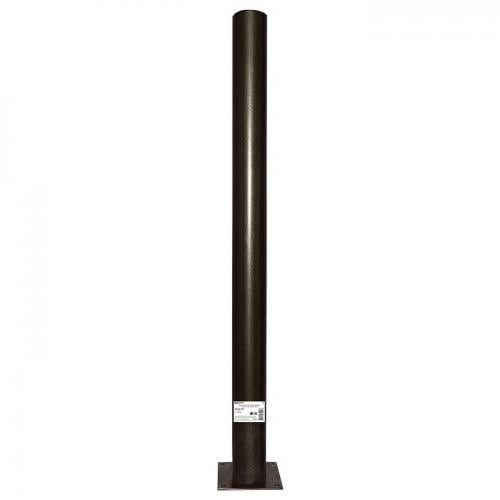 Металлическая опора изготовлена из стальной трубы (толщина стенки 2 мм, диаметр 60 мм). Квадратное основание из листовой стали (110х110х2 мм) с отверстиями под анкерные болты М8.
