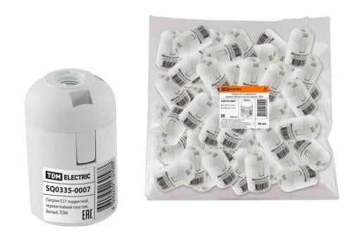 Патрон E27 подвесной, термостойкий пластик, черный, TDM - это качественный и надежный патрон для ламп с цоколем E27, предназначенный для подвесного монтажа. Изготовлен из термостойкого пластика, что обеспечивает безопасность и долгий срок службы изделия. Черный цвет патрона придаст стильный и современный вид любому интерьеру. Продукт отличается высоким качеством исполнения и удобством в использовании, что делает его идеальным выбором для освещения в доме, офисе или других помещениях.